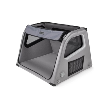 Åbninger af lysgennemtrængeligt mesh-stof giver god ventilation. Robuste lynlåse kan fastgøres, så hunden ikke kan åbne dem. Bagagerumsboksen har et bærehåndtag på undersiden. En læssekantbeskyttelse kan fastgøres til boksen med karabinhager og forhindrer dermed snavs og ridser på bilen.